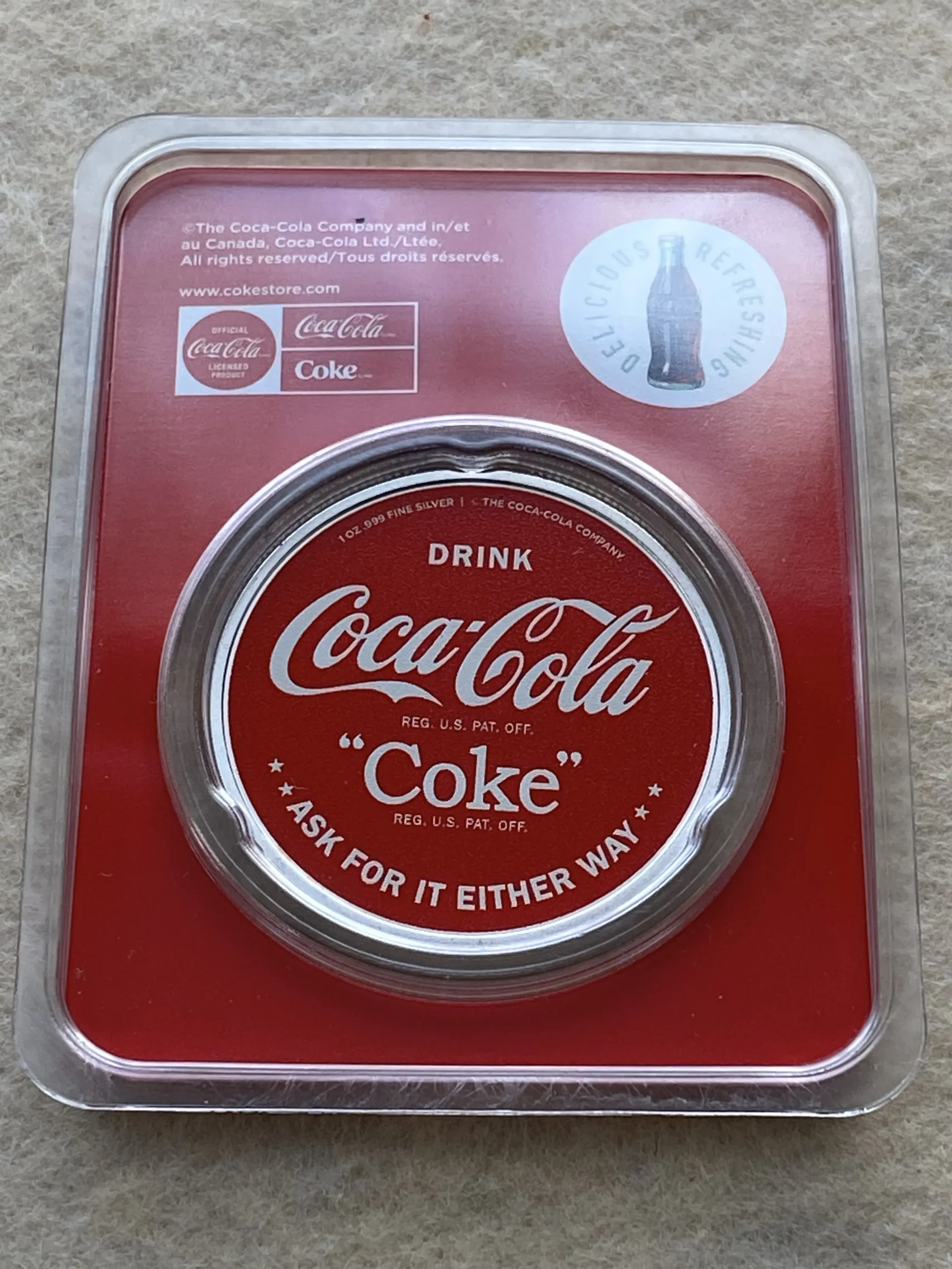 コカ・コーラをモチーフにした大変秀逸なデザインの純銀1オンスカラー銀メダル(プラスチックポリマーケース封入品)を、投資やコレクションに是非ご検討下さい!