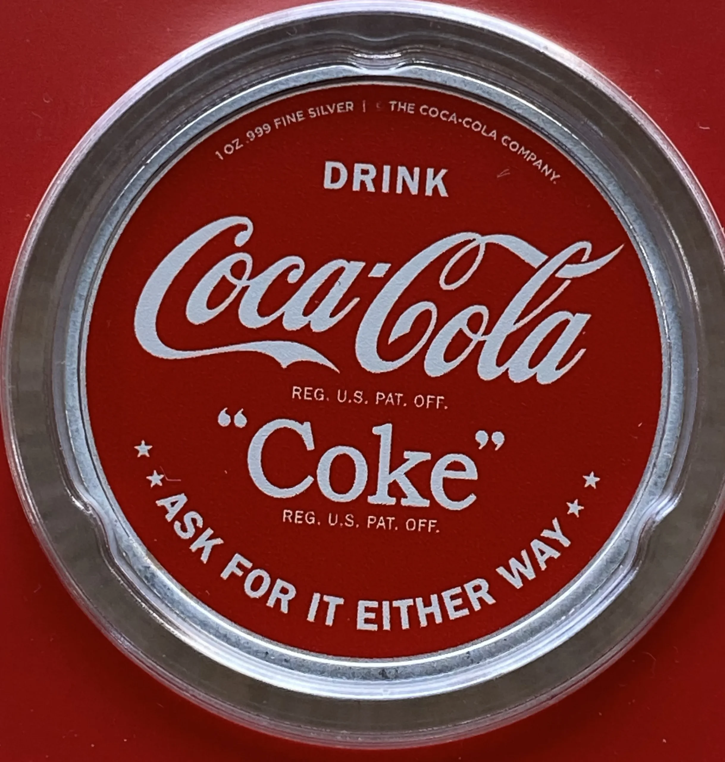 こちらは、コカ・コーラ 純銀1オンスカラー銀メダルになります。