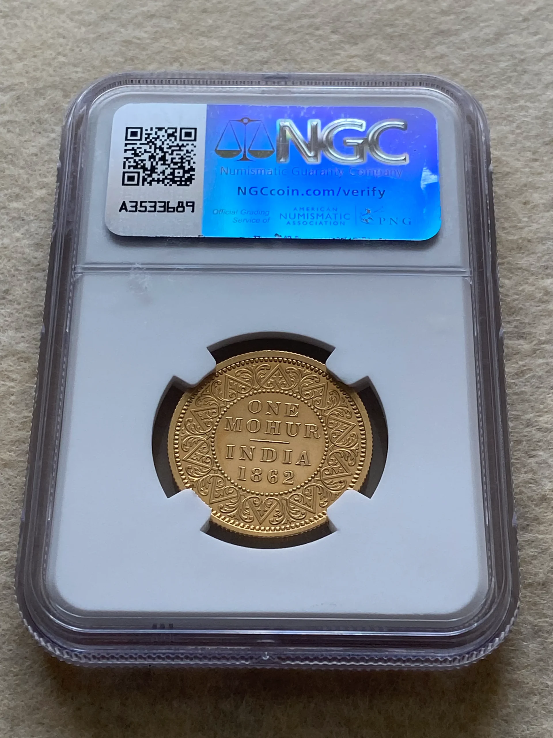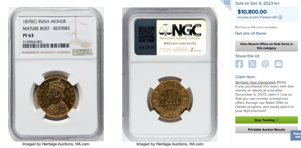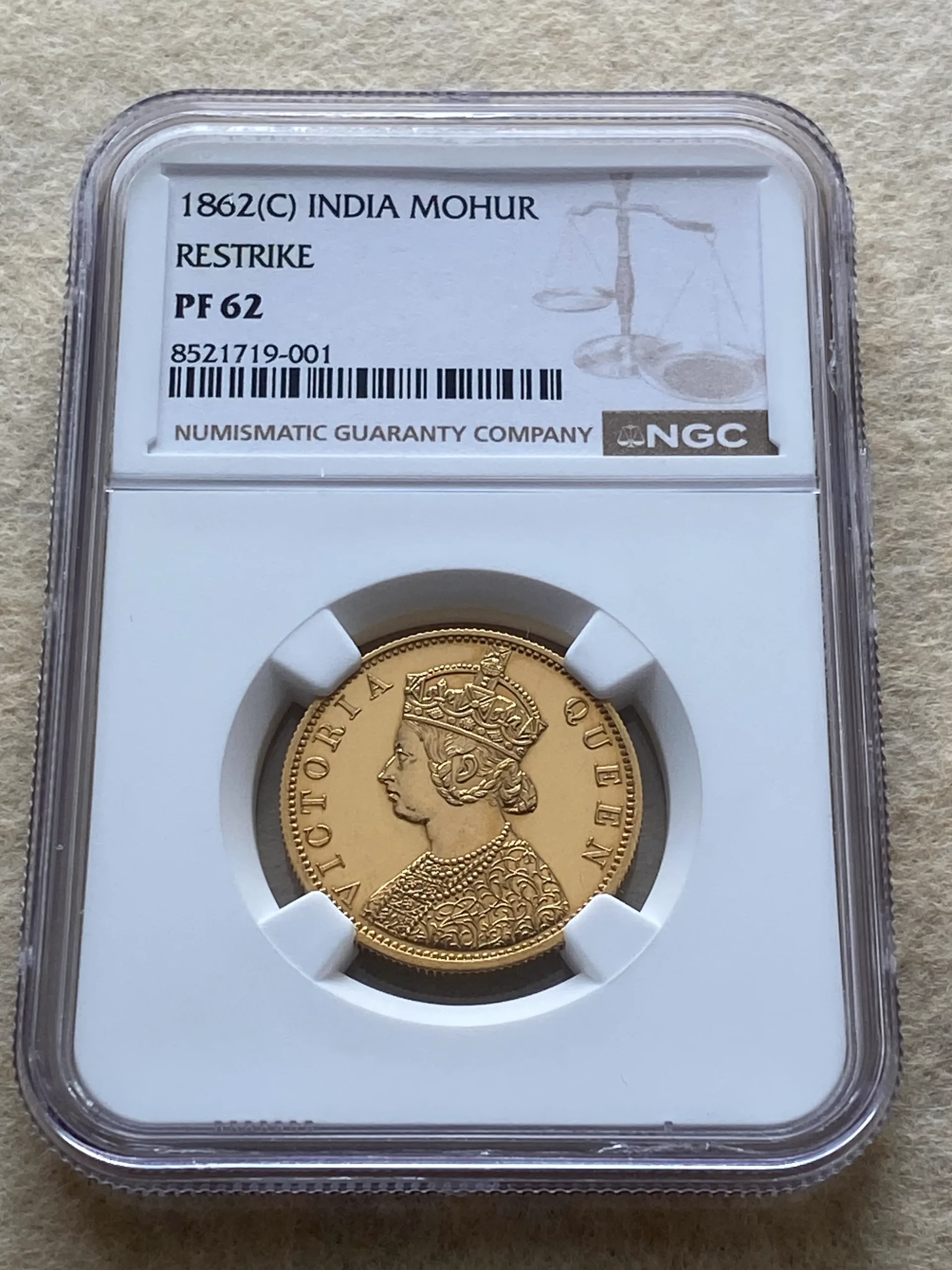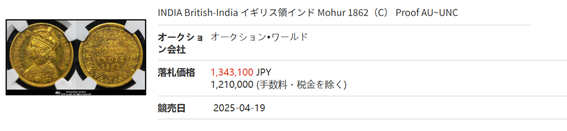 ビクトリア女王が描かれた1862年 インド モハール金貨の希少なPF62鑑定品を、是非投資やコレクションに是非ご検討下さい!
