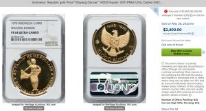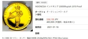 20000ルピア金貨のガルーダバードに次ぐ人気のデザインかつ、40㎜の見栄えのするインドネシア 10000ルピアプルーフ金貨のNGC PF64UC鑑定品を、HP開設記念のこの機会に是非ご検討下さい!