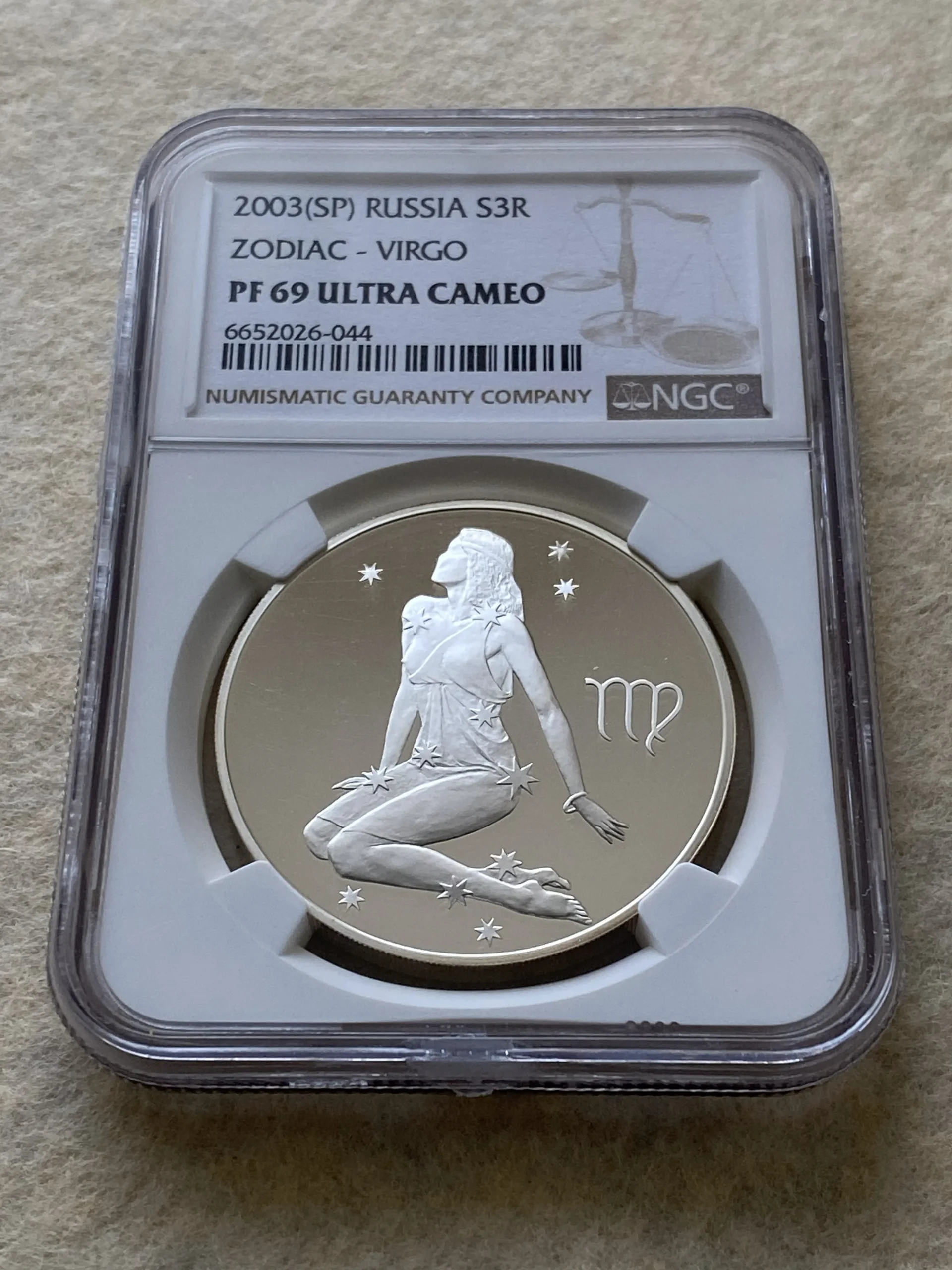 2003年 ロシア 3ルーブルプルーフ銀貨 乙女座 PF69UC NGC 準最高鑑定!!