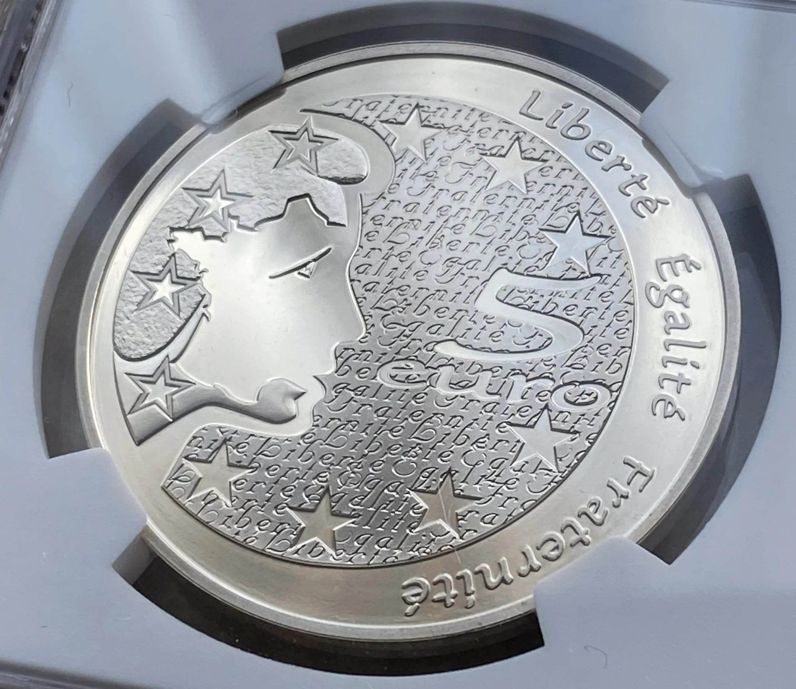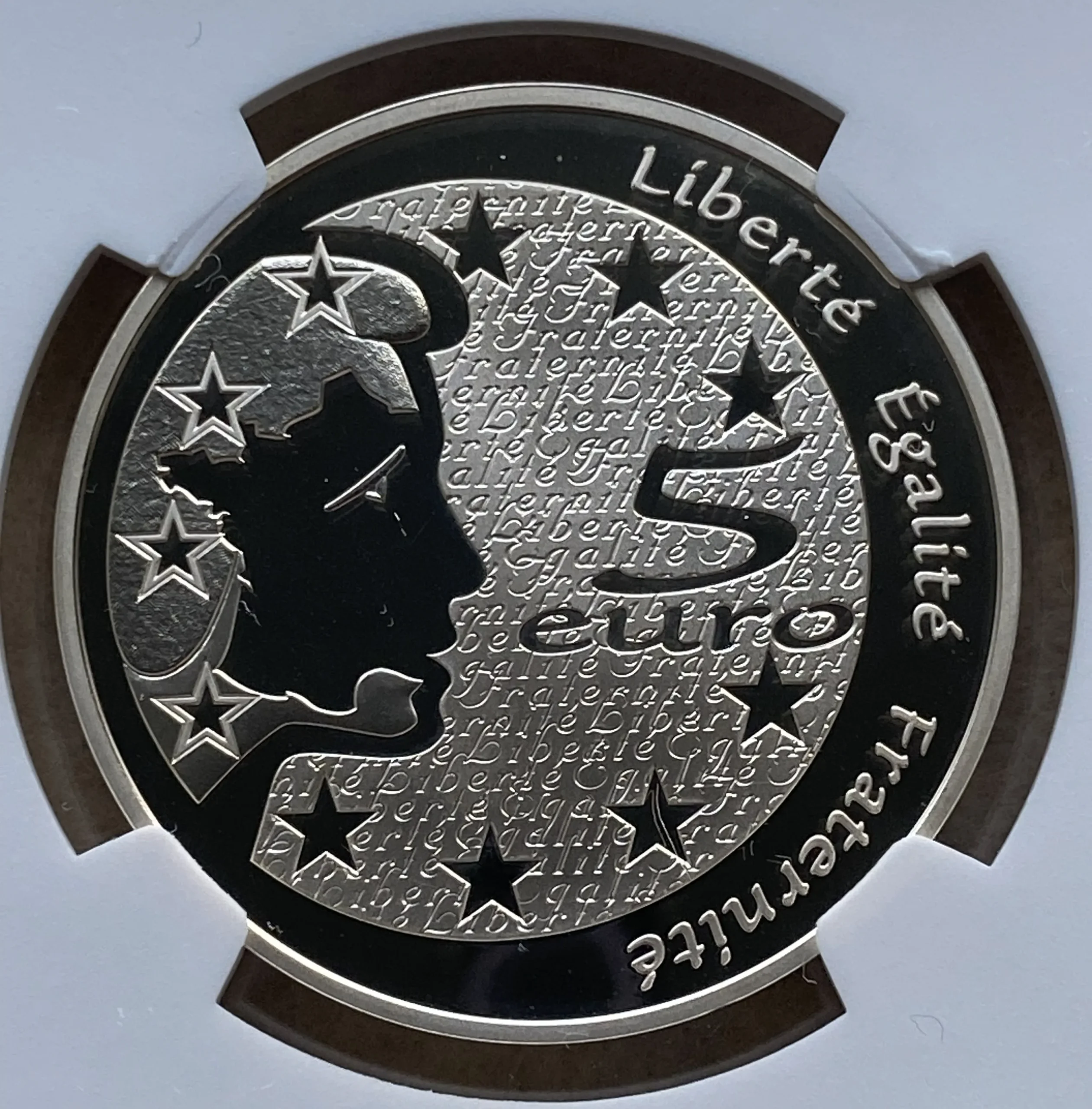 裏面:マリアンヌの頭部がフランスの地図の形をしており、周囲に欧州旗の星
