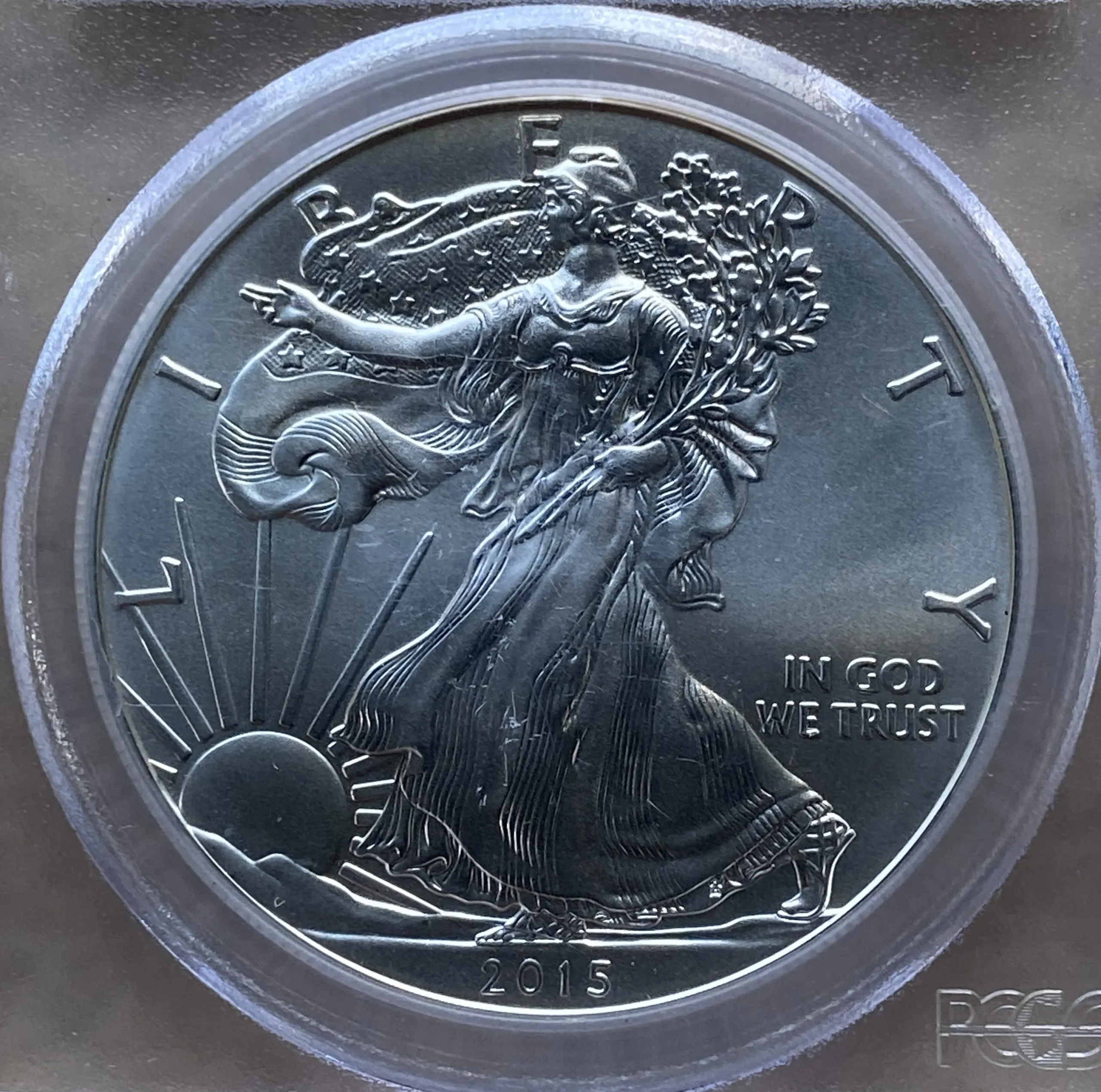 こちらは、2015年 アメリカ 1ドル銀貨 ウォーキングリバティ になります。