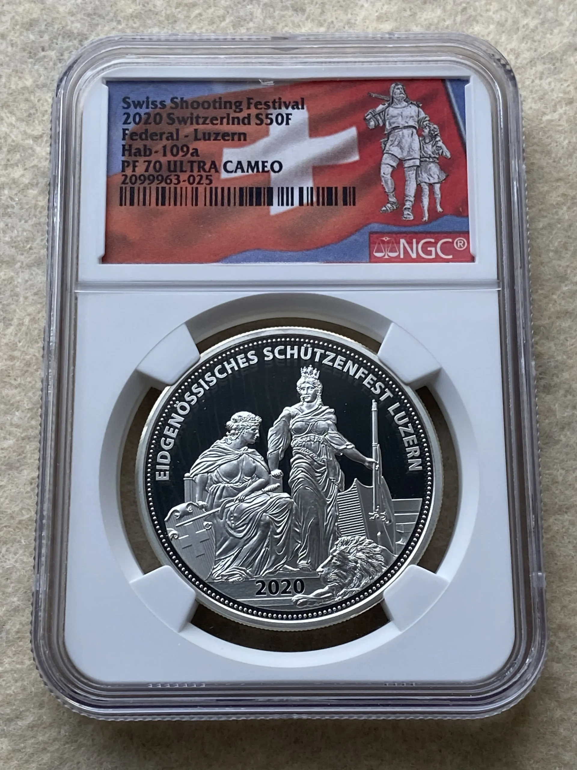 2020年 スイス 50フラン銀貨 ルツェルン州 射撃祭ラベル PF70UC NGC 堂々最高鑑定!!