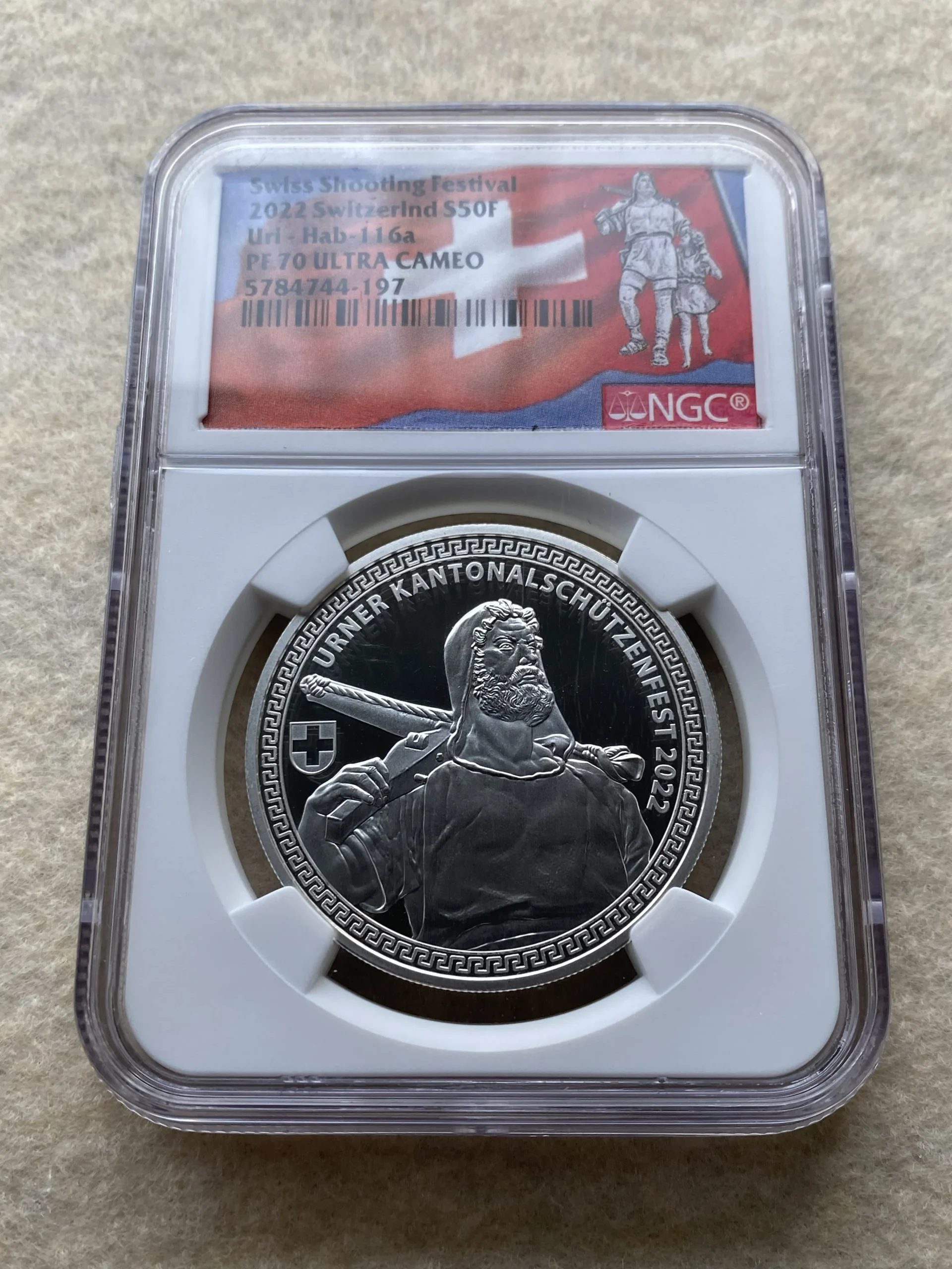 2022年 スイス 50フラン銀貨 ウーリ州 射撃祭ラベル PF70UC NGC 堂々最高鑑定!!