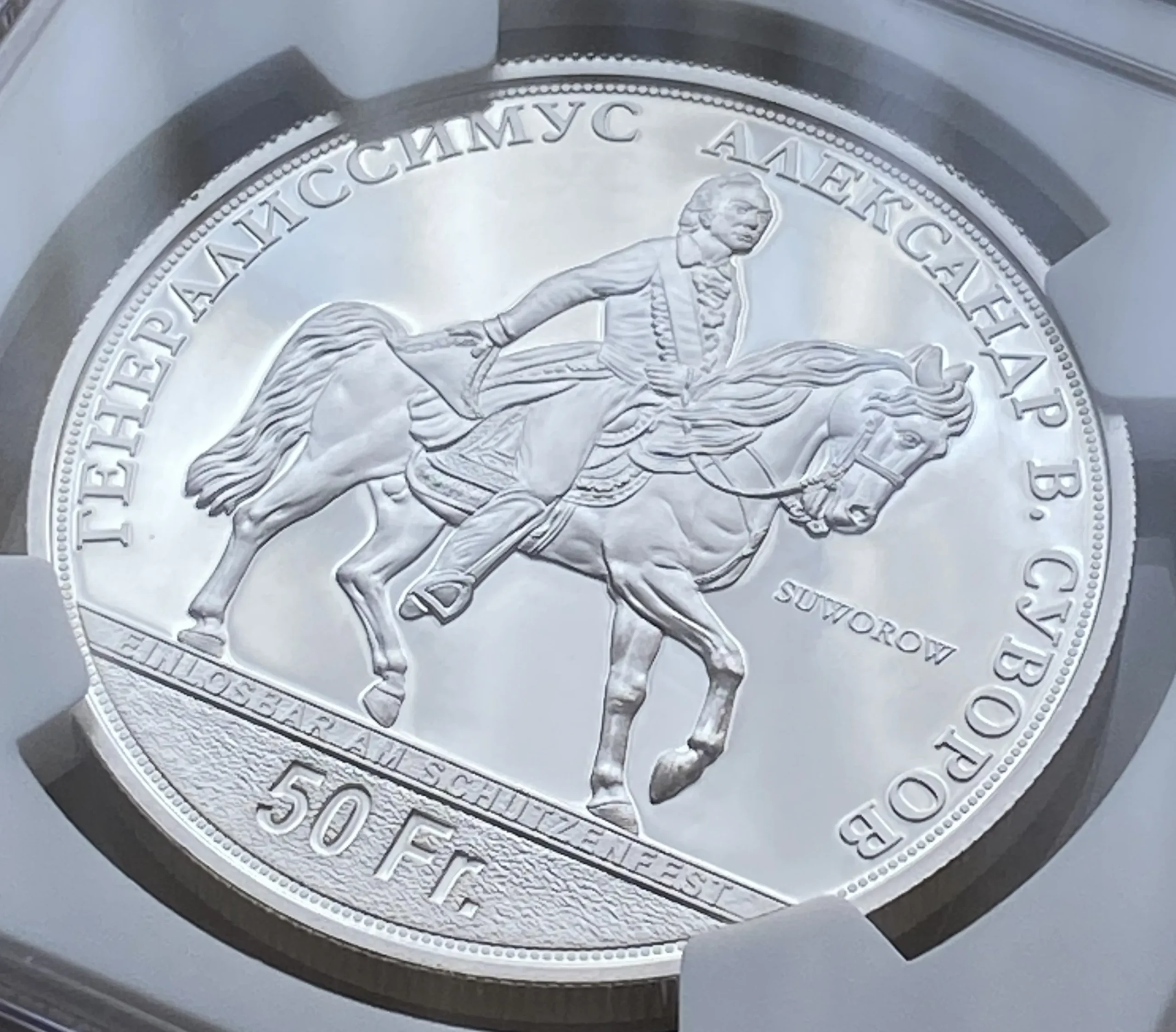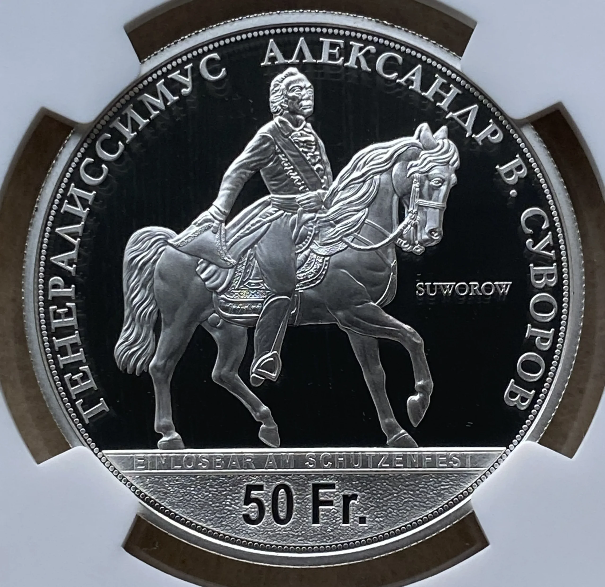 2022年スイス現代射撃50フラン銀貨 ウーリ州 射撃祭特製ラベル 堂々最高鑑定品を、是非投資やコレクションにご検討下さい!