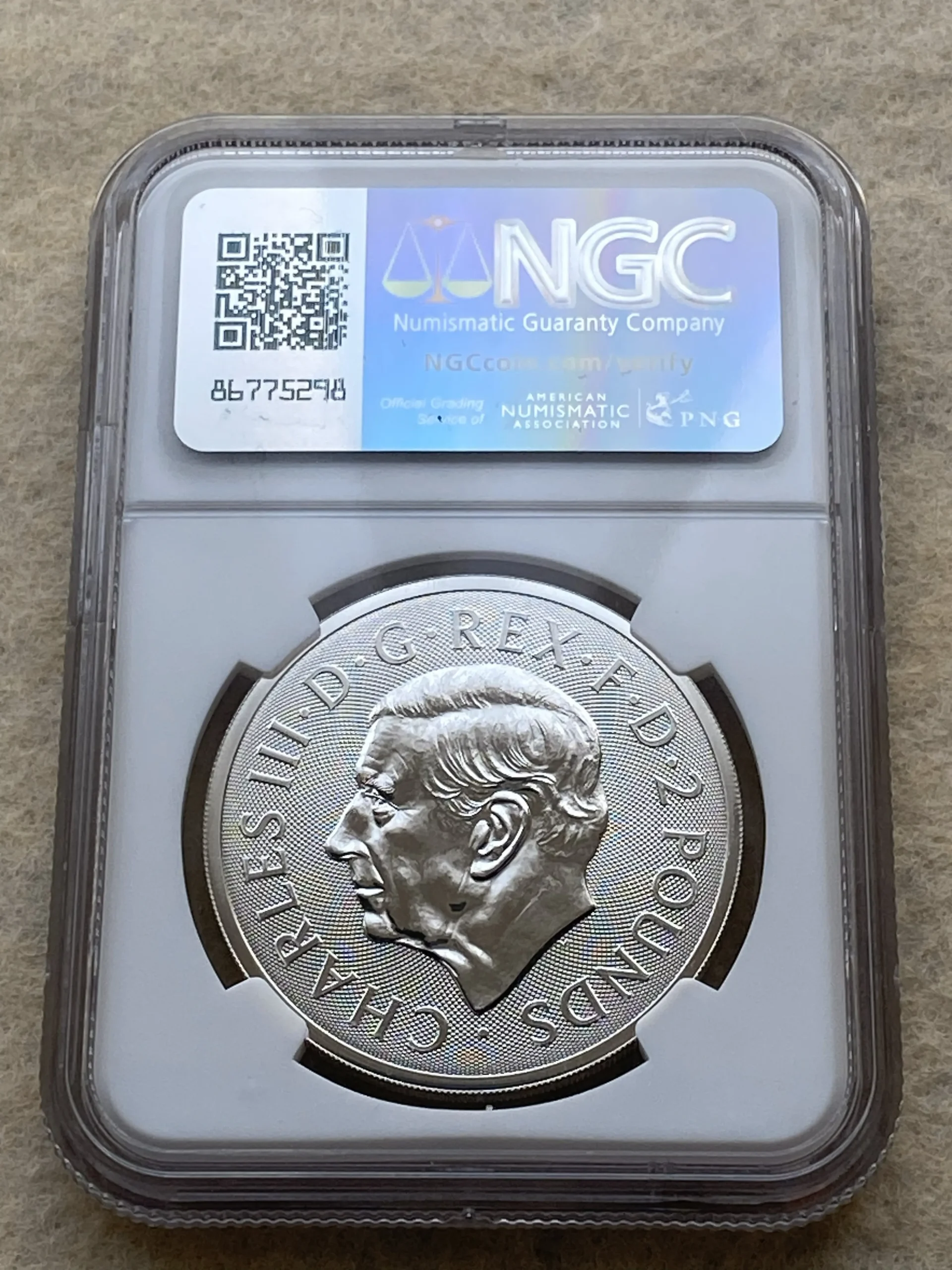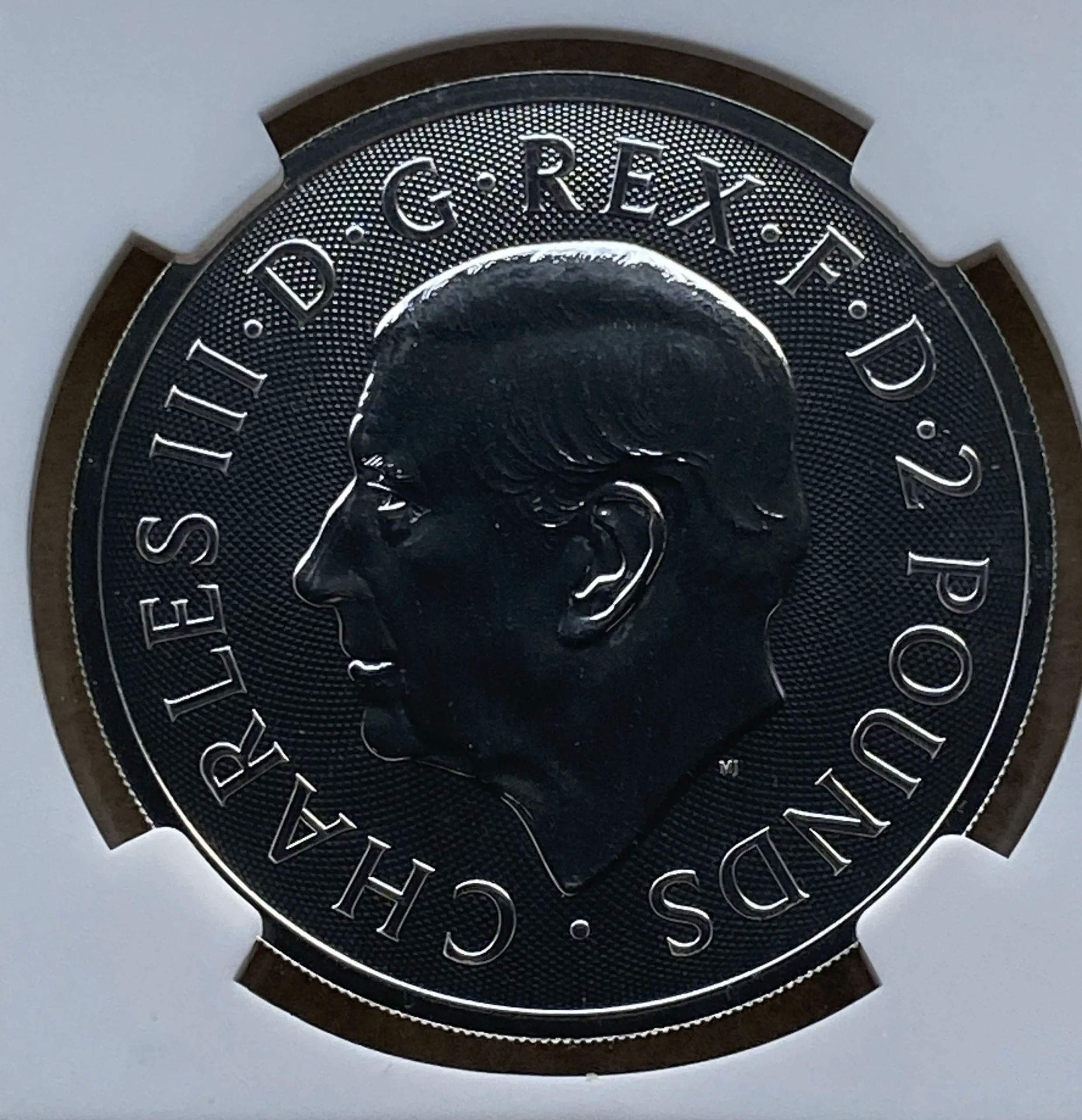 ブリタニア&リバティという米国と英国のコラボデザインの2ポンド銀貨 MS70 堂々最高鑑定品を、 投資やコレクションに是非ご検討下さい!