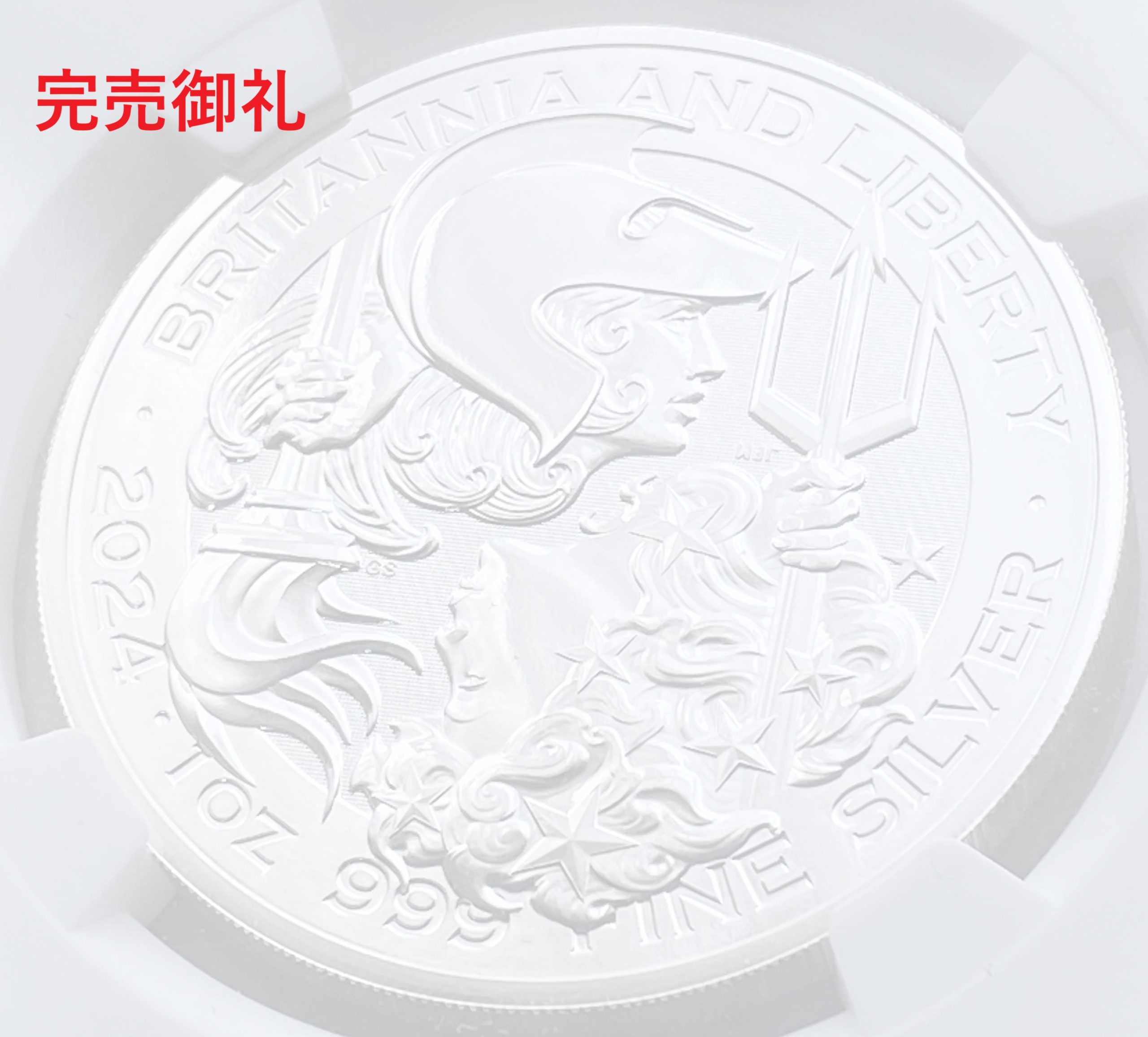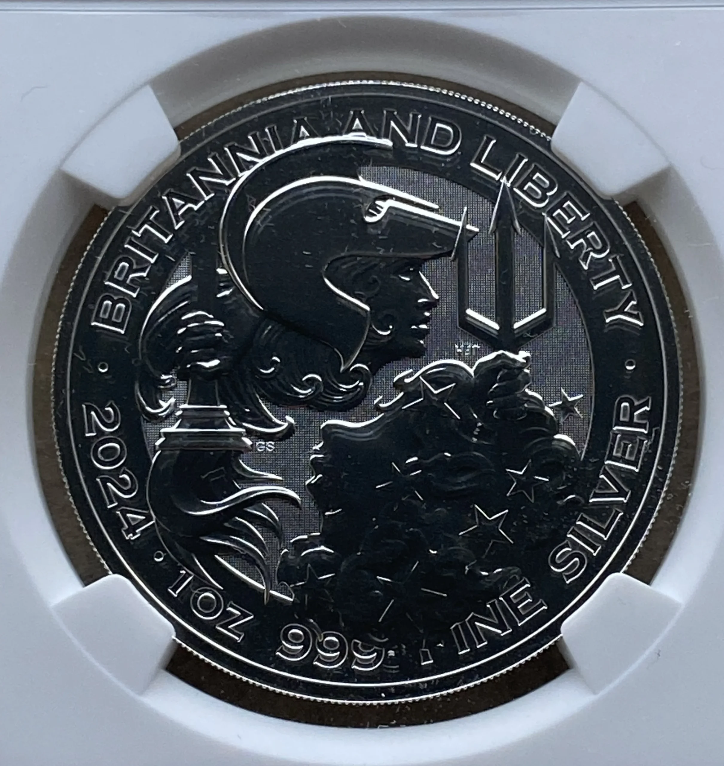 こちらは、イギリスロイヤルミント発行 2024年 イギリス ブリタニア 2ポンド銀貨 ブリタニア&リバティになります。